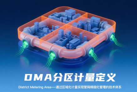 DMA(District Metering Area,独立计量区域)分区计量技术的核心逻辑,是通过阀门隔离或管道改造,将庞大复杂的供水管网划分为边界清晰、水力独立的若干计量单元,在各单元的进水口、出水口及关键节点安装高精度流量计、压力计等设备,实时采集进出水量与压力数据,通过水量平衡分析判断区域漏损水平。简单来说,就是为供水管网划分“责任单元”,让每个区域的水量消耗都可精准追溯,彻底改变传统“大海捞针”式的被动检漏模式。